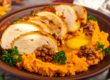 A zöldséges alapba belehelyezzük a feldarabolt csirkét, majd felölntjük húslevesalappal vagy ha az nincs, vízzel. Ne túl sokkal, mert a csürke amúgyis sok levet ereszt főzés közben. Ha nagyon elfőne a lé, kicsidenként pótolhatjuk. Fedő alatt, alacsony lángon pároljuk, de csak addig kavargassuk, amíg a hús el nem kezd puhulni. Utána már inkább ne nagyon kavarjuk, mert szétmehet a hús, és hogy fog kinézni! Egy-másfél órás párolás után, amikor már látható, hogy a csürke húsa olyan vajpuha, hogy mindjárt leesik a csontról, késznek nyilváníthatjuk.